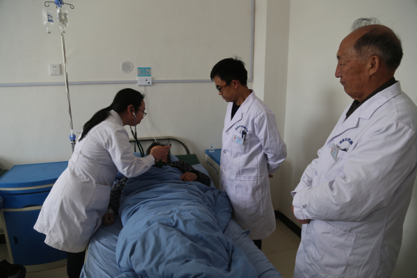 *李院长医生、高凯勇医生、姜长林大夫深入到黄洞乡卫生院病房查房、坐诊。