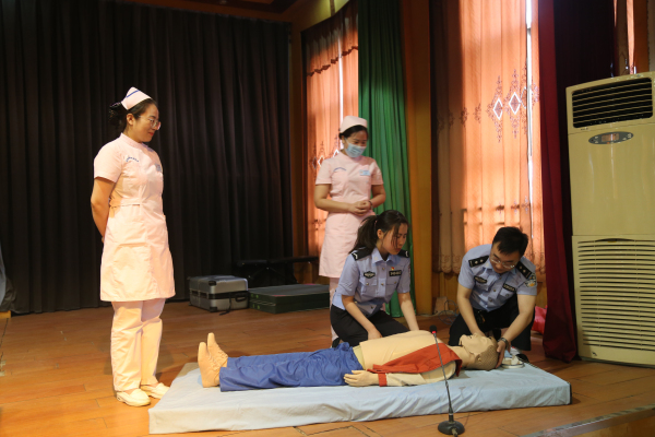 “黄金急救四分钟”是否及时、诊断是否正确、措施是否果断得力,均将影响到病人的安危。李院长医生详细的为大家介绍了心肺复苏、人工呼吸等专业急救理论知识,让交警同志们受益匪浅。