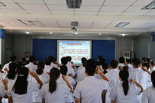 “敬佑生命,救死扶伤…”铿锵有力的誓词回荡在医院学术报告厅,院长助理李院长女士带领全体医师举行了《医师宣言》的宣誓,誓言掷地有声,场景严肃庄重。