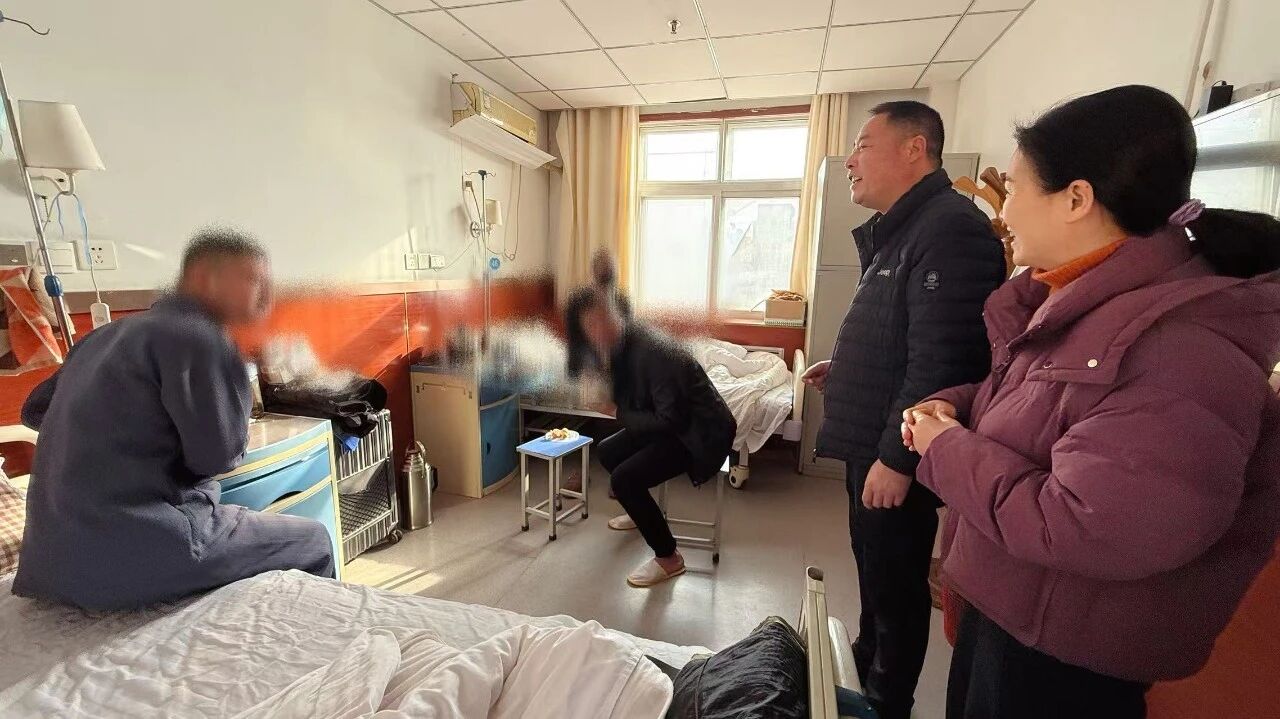 殷殷嘱托传关爱,句句关怀暖人心。“新年快乐,给您拜年了!祝您早日康复!”“身体恢复得怎么样?饮食还习惯吗?”一声声亲切的问候、一句句暖心的叮嘱,驱散了患者心中的乡愁与病痛的阴霾。医院领导与患者亲切交谈,详细询问他们的治疗进展、生活状况,为他们送去医院的关怀与温暖,鼓励患者树立战胜病魔的信心和勇气,积极配合治疗,争取早日康复。